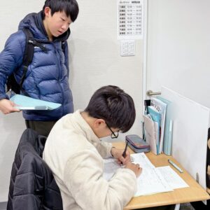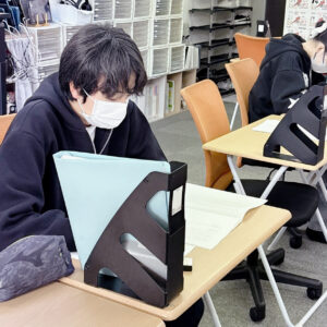 その後、パソコンで学んだ内容を演習問題に取り組むことで自分のものにします。パソコンや講師の解説を聞くだけでは、学んだことは身に付きません。演習問題を解くことで実際に頭を使い、身に付けていくのです。演習問題に取り組む際は、必死になって考えることが大切。もちろん講師がしっかりサポートします。