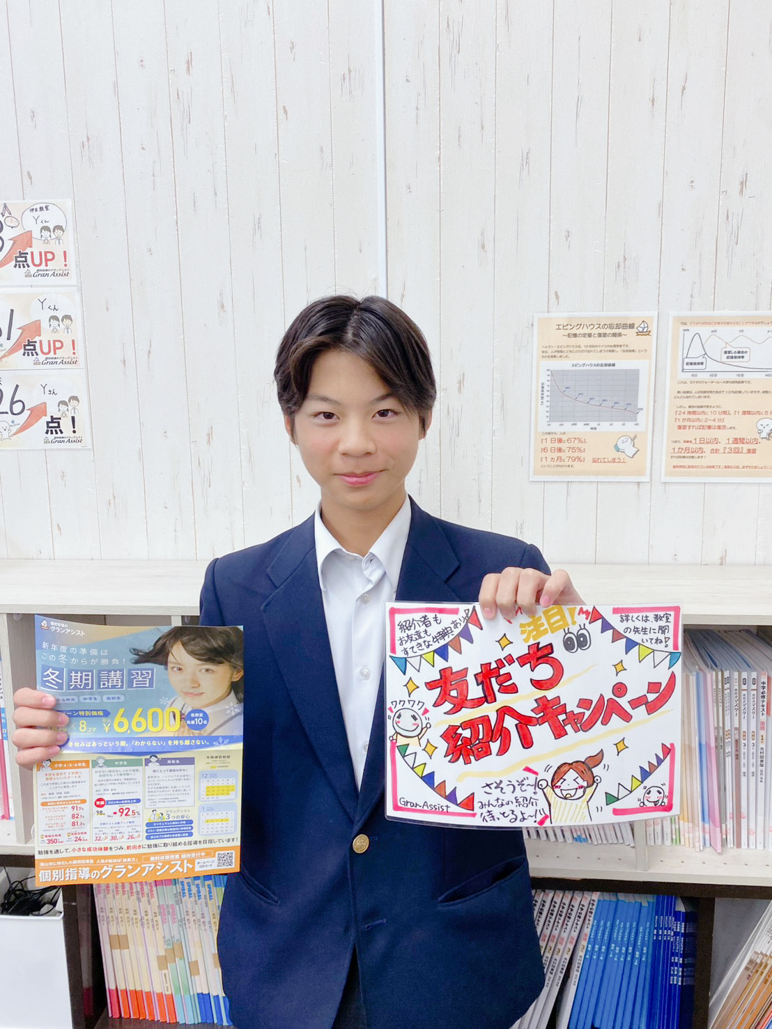 グランアシストでは、「自分一人で黙々と頑張りたい」という方はもちろん、「周りの仲間と切磋琢磨したい」という方にも最適な環境です。「周りのお友達を誘ってのご参加も大歓迎です!」「冬休み、一緒に頑張ってみない?」と、ぜひ声を掛け合ってみてください。お友達と一緒の参加も、心よりお待ちしております!