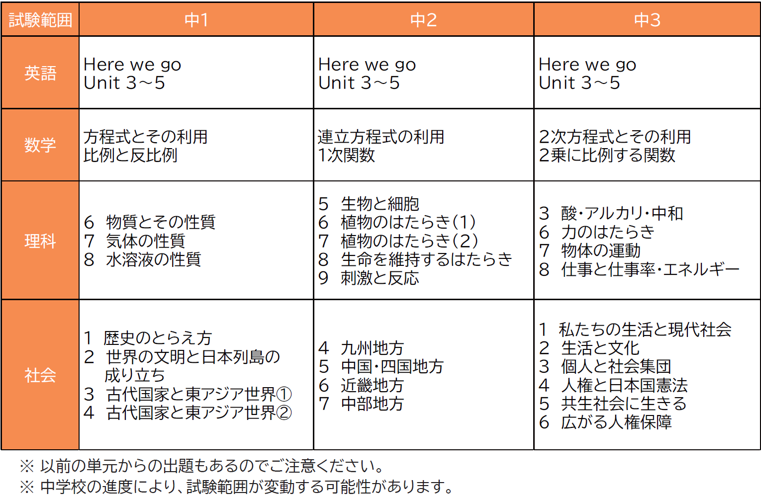 テスト範囲