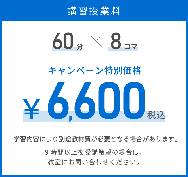 9時間以上を受講希望の場合は、教室にお問い合わせください。